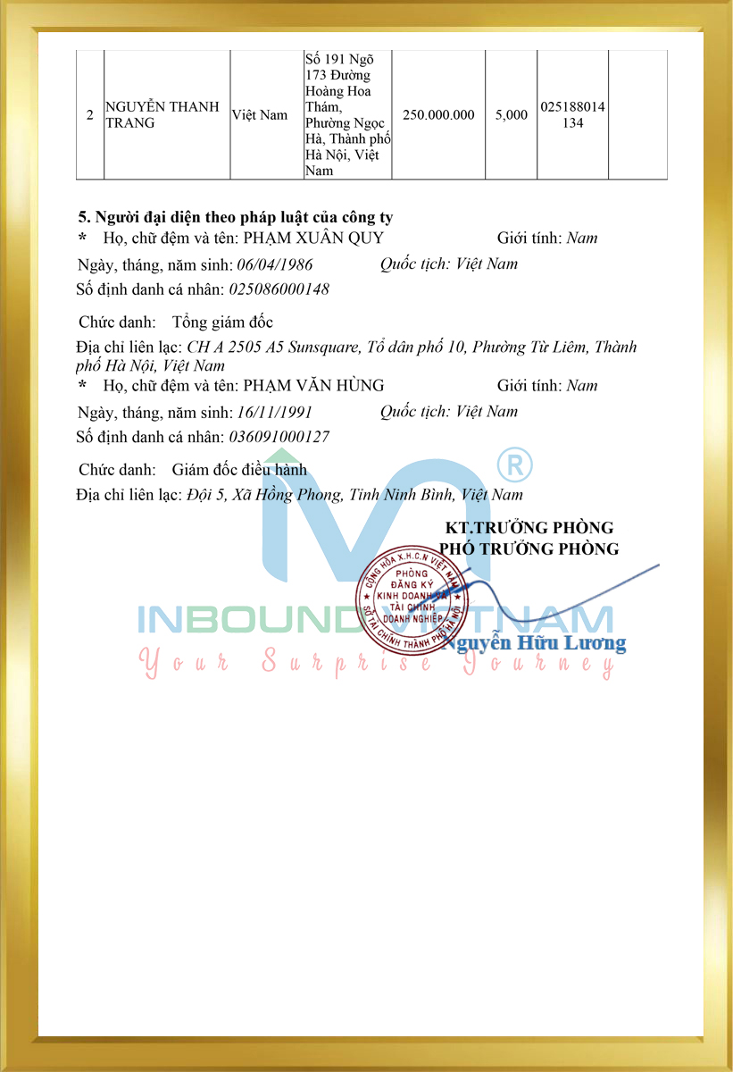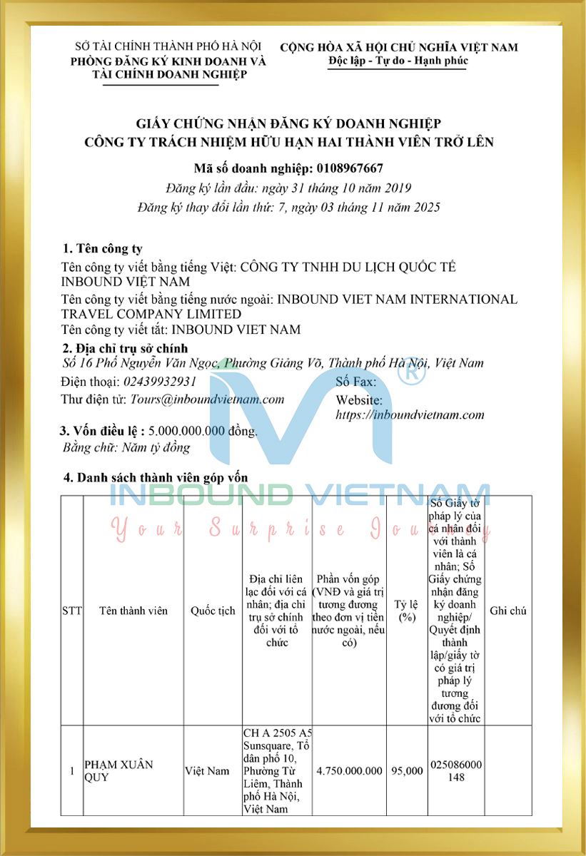 1. Hành lang pháp lý vững chắc: Inbound Vietnam hoạt động hoàn toàn hợp pháp, tuân thủ mọi quy định của pháp luật Việt Nam trong lĩnh vực du lịch và tư vấn lao động. Chúng tôi có đầy đủ giấy phép kinh doanh, chứng chỉ hành nghề và các giấy tờ liên quan để đảm bảo mọi hoạt động diễn ra minh bạch và đáng tin cậy.